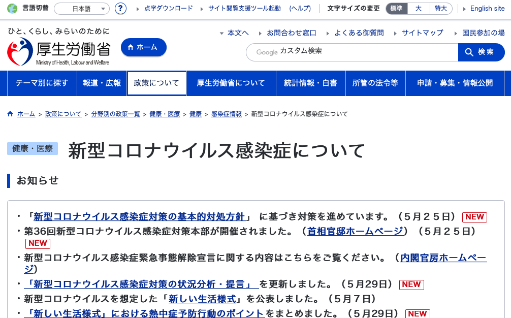 I’ll start this entry by listing the resources I use for tracking the virus progress in Japan.