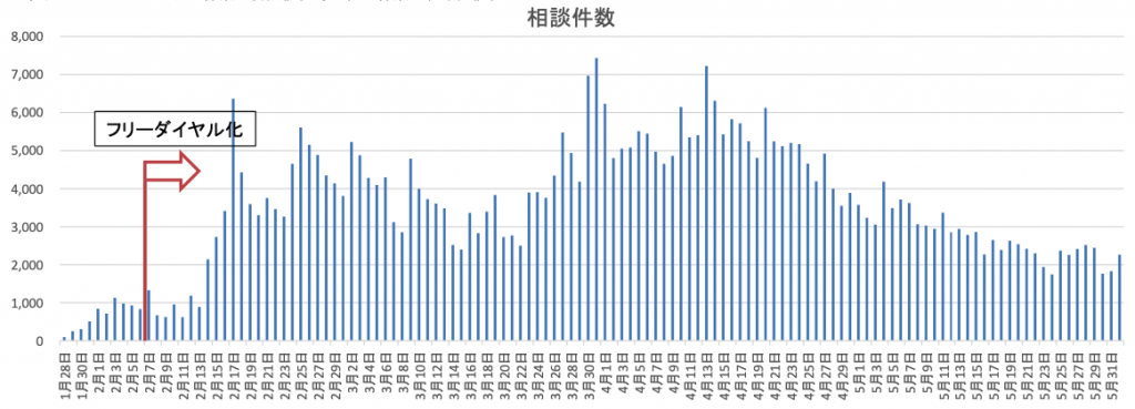 If you go here and search for “厚生労働省電話相談窓口(コールセンター)の対応状況等について” you will get a PDF link that changes each day showing a daily graph of calls to the coronavirus national hotline. Below is what is looked like for June 1st, with total calls hovering around the 2000 mark for the past week. This is a fairly representative view of how the virus is spreading nationwide. If things start to get out of hand, expect the numbers to push past 3000 a day. While February was also high, there was still influenza around to muddy the waters. By March that had died away so mostly the SARS2 signal will have been dominant. Any break through past 3000 now would signal a resurgence for sure.
