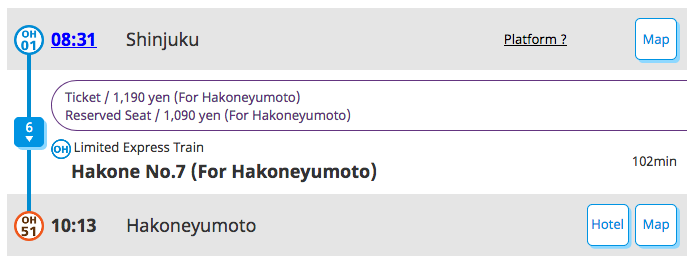 This pamphlet gives you everything you could possible want to know about travel around Hakone and is pretty indecipherable due to the sheer amount of information. Basically, the classic tour is on page 6 of the pamphlet and is your best bet for a day’s activities, except you won’t get the Romancecar as it is a waste of money (just take a regular express train or use the Shinkansen with your JR pass).