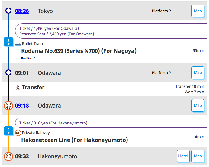 There are two routes into Hakone from Tokyo; The JR route using the Shinkansen, and the Odakyu route express trains (JR Pass is not valid for travel).