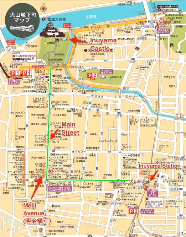 Exit Inuyama station on the west side and head straight, following the green line along the main shopping street until the castle. Here is a link to the path to follow in Google maps.