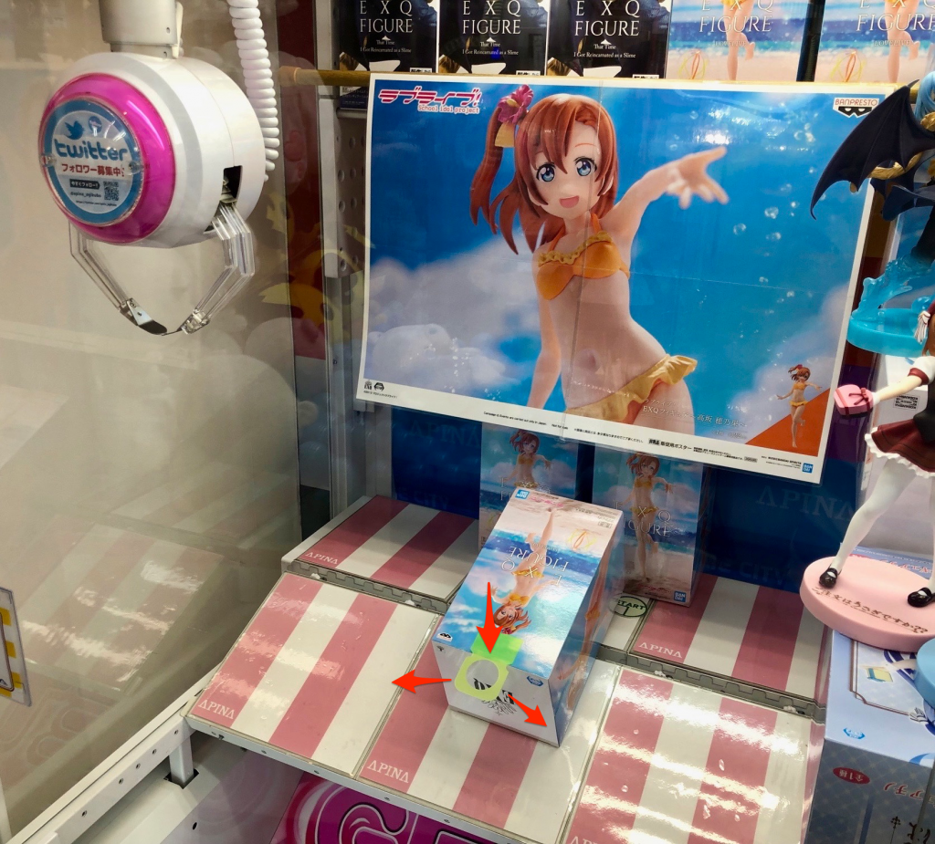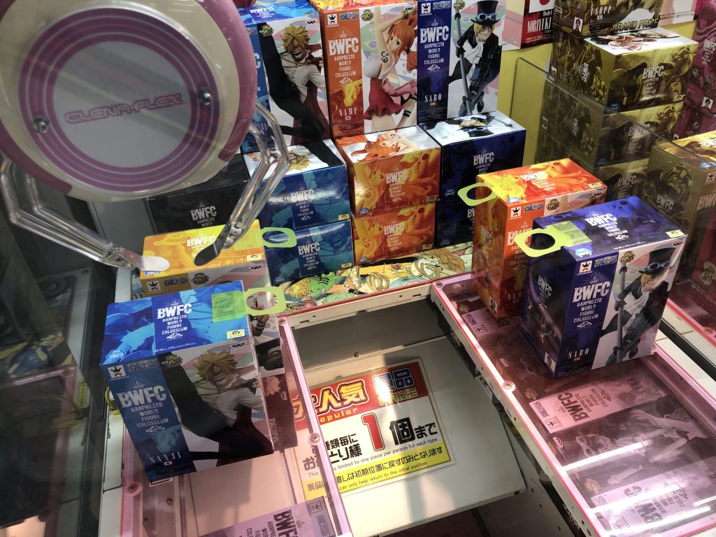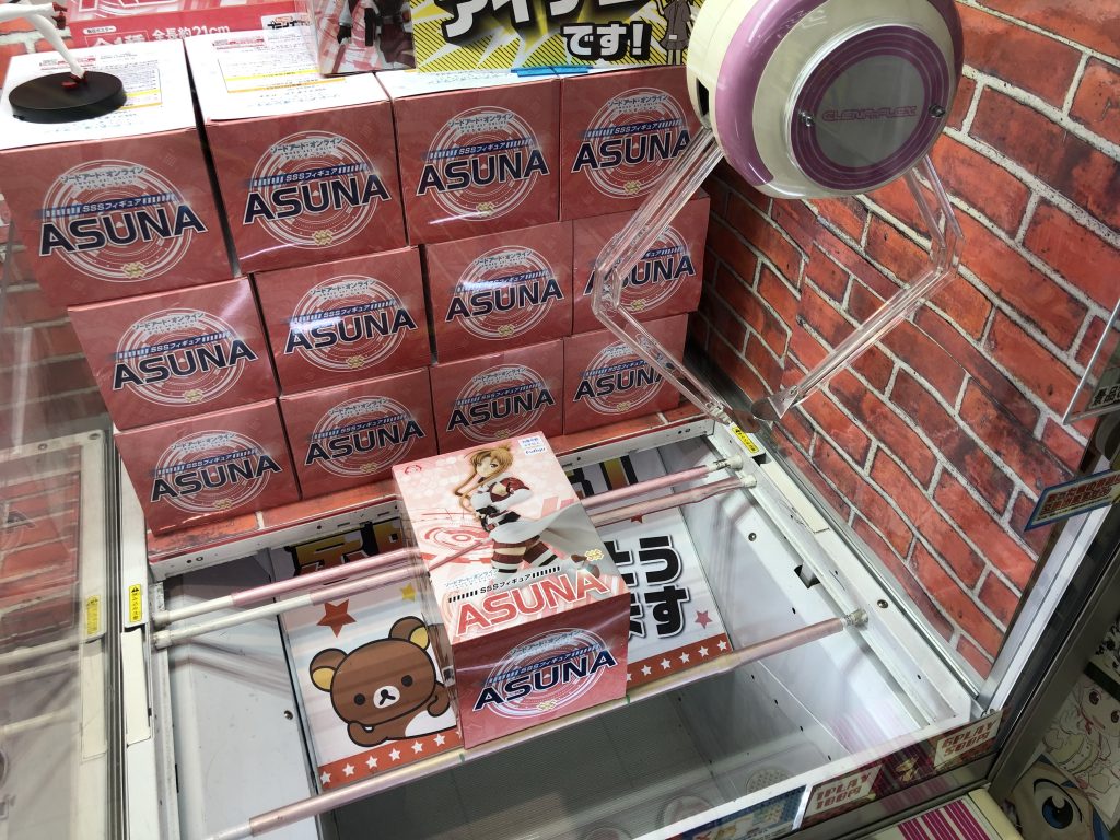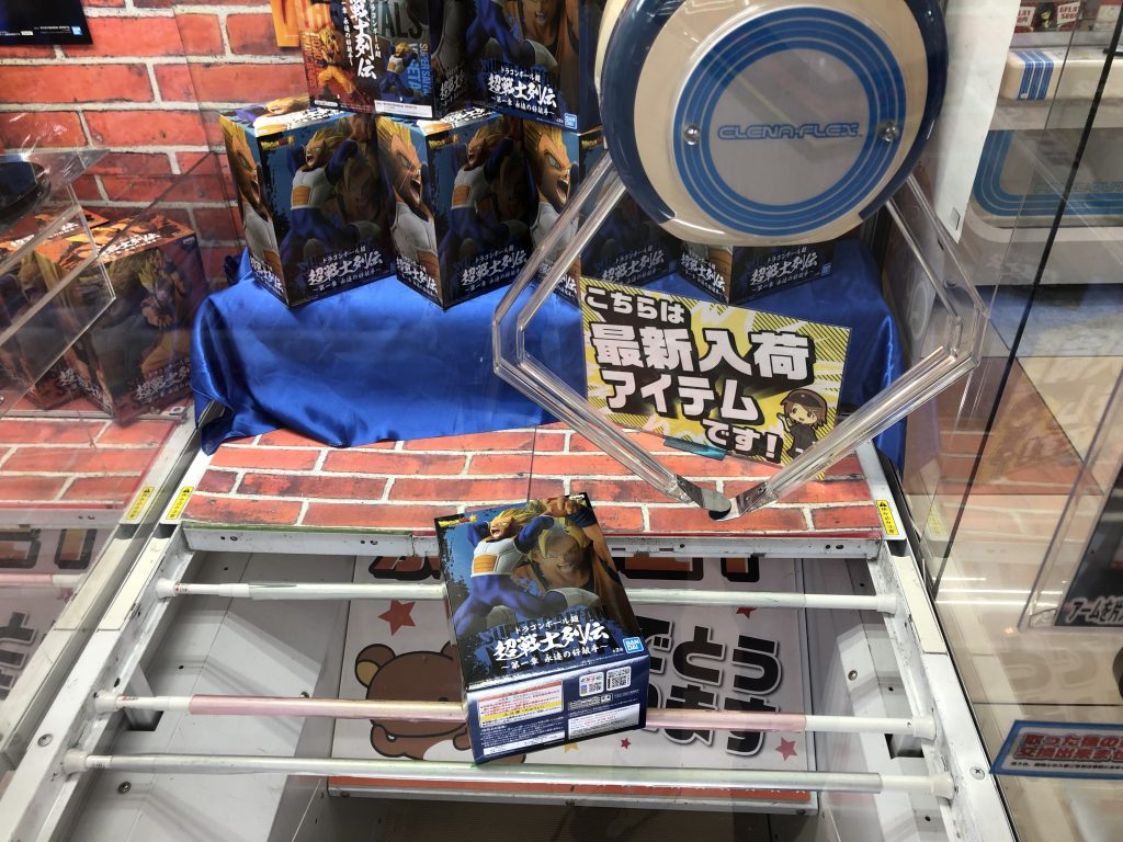 So how to you actually get the prize? “When Japan” hates these types of prize games as the prize is prone to landing in a position that makes winning impossible, and you often don’t seem to make any progress from try to try, which can get frustrating. If you want some tactics, then try the video below which shows the basics. Don’t think however that you can get the prize in just ¥300 because you can’t. The guy who did that video had the machine set to a strong setting on purpose. Usually the pincers are set so weak they can barely lift the box and you end up just having to nudge it a bit at a time. Remember that these figures are worth ¥1500-¥3000 so you will be forced to spend more than that on average.